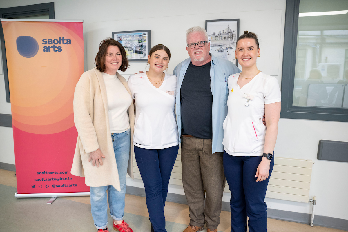 Speaking at the opening, Brendan McHugh said: “During my rehabilitation, with my speech impaired, I fell into a trance of making art, it brought light into a dark time. I’m deeply grateful to all the staff at UHG, Merlin Park University Hospital, the ESD Team and Saolta Arts. Everyone has been incredible. Thank you from the bottom of my heart.”