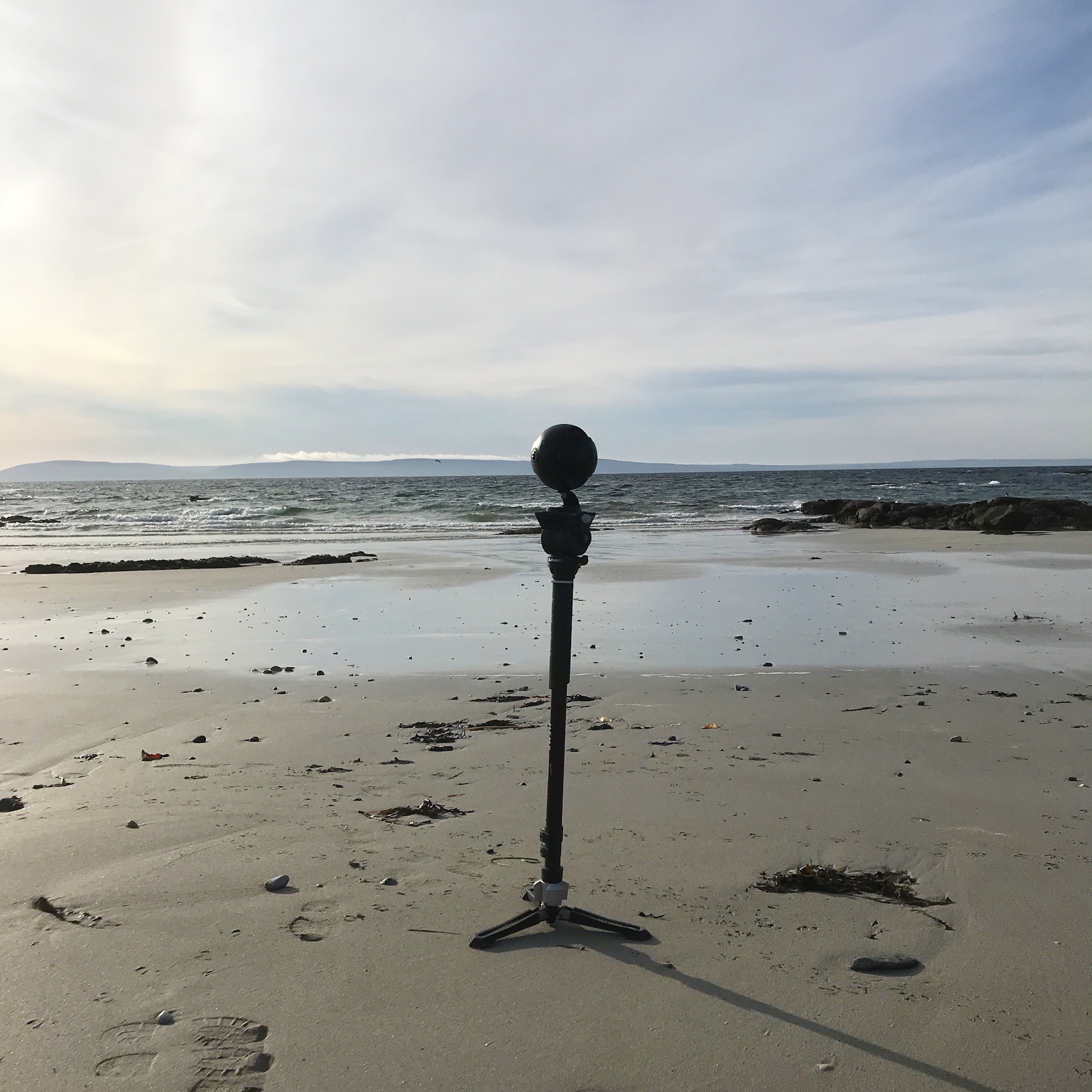 Lots of birds were flying around and I could see the rocks. I could see all around me, like in a whole 360° space. And the sky was lovely and blue and the beach was calm.